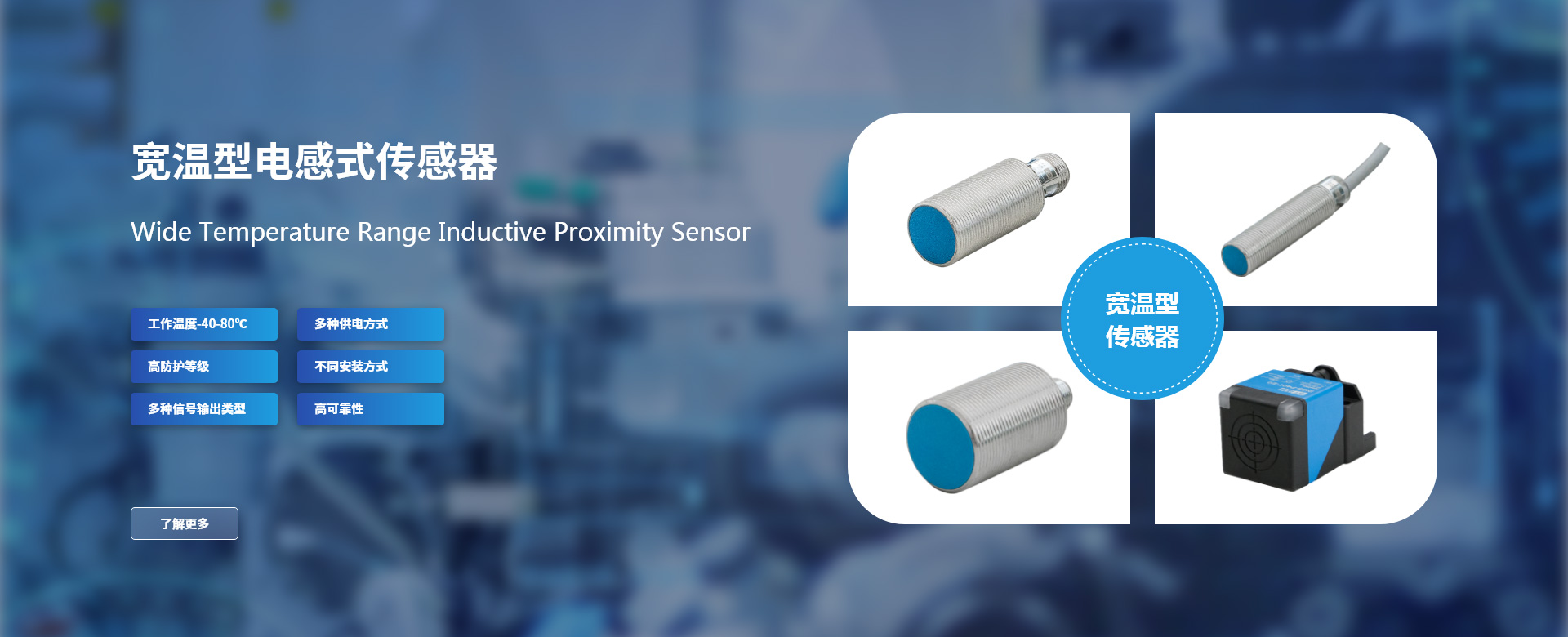 GSEE-TECH 通過采用先進(jìn)的傳感器技術(shù)、材料以及穩(wěn)定的生產(chǎn)工藝,可提供適用于各種工業(yè)自動化現(xiàn)場環(huán)境中的位置類以及過程類工業(yè)傳感器解決方案。 位置類傳感器包括電感式,電容式,光電式,超聲波式,磁感應(yīng)開關(guān)以及磁致伸縮直線位移式等各種類型位置檢測產(chǎn)品過程類傳感器包括壓力、流速、溫度等,用以檢測或監(jiān)控過程類數(shù)據(jù)的重要參數(shù)變量